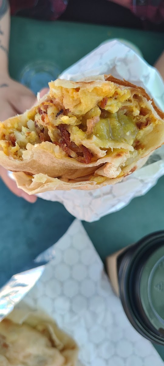 Comes with egg, cheese, potato, bacon, brisket, and green chili